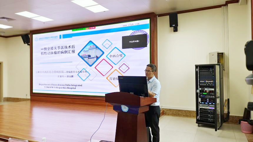 玉林市中西医结合骨科医院骨病股骨头坏死专科副主任医师唐家鹏教授讲解《膝关节置换术后假性动脉瘤一例汇报》。唐家鹏教授首先介绍了TKA定义、目的、并发症,并通过一例双侧KOA患者行TKA术后出现小腿后上端疼痛,彩超提示假性动脉瘤的病例引出“TKA术后动脉损伤”的问题,以及大量文献回顾了TKA术后动脉损伤的特点,并提出了本例TKA术后发生假性动脉瘤的原因、预防方法、如何处理等问题。