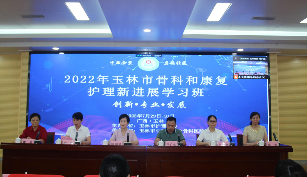为促进学科护理技术创新和建设,进一步推动我市中西医结合骨科与康复护理持续发展,搭建骨科与康复护理学术交流平台,由玉林市护理学会主办,玉林市中西医结合骨科医院承办的“2022年玉林市骨科和康复护理新进展学习班”于7月29日-31日在我院成功举办。本次学习班的主题是:创新•专业•发展。学习班以线下培训交流及线上同步直播相结合的方式,围绕护理岗位人才培养、护理服务质量管理、护理科研选题与论文写作及骨科和康复护理新进展、新技术、新理念等核心问题进行了主题演讲,为学员们奉上了一次精彩绝伦的知识盛宴。此次学习班汇聚了全区25个医疗卫生单位共500多名护理同仁前来共同探讨,畅享学术筵席。