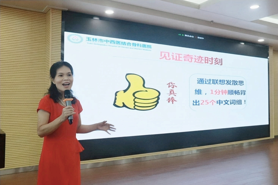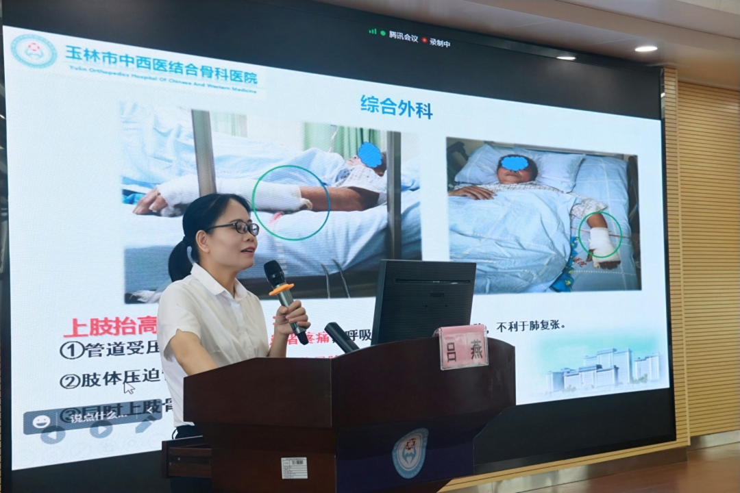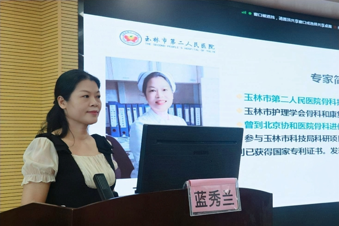 ▲玉林市护理学会护理管理专业委员会副主任委员、我院护理部副主任吕燕副主任护师授课《骨科专科护理工具创新与应用》
