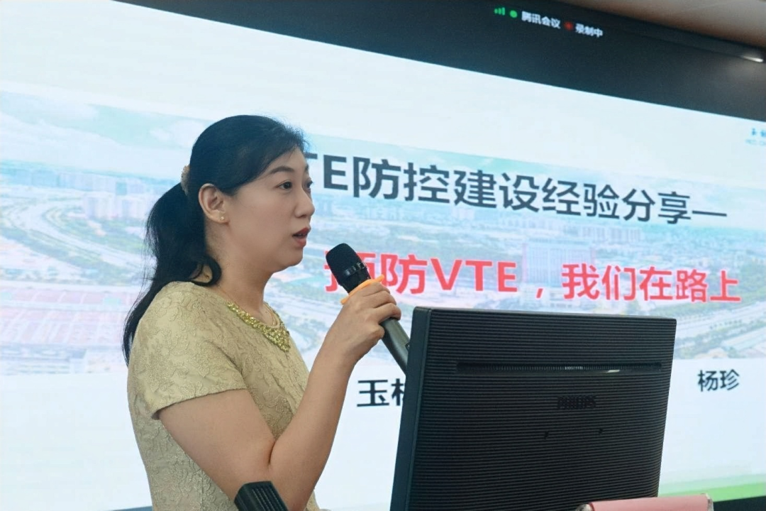 ▲玉林市红十字会医院骨科护士长,右江民族医学院副教授杨珍主任护师授课《VTE防控建设经验分享——预防VTE,我们在路上》