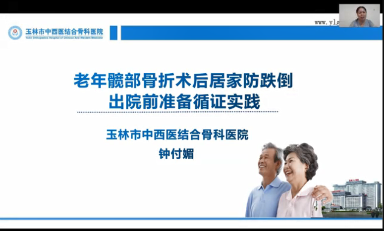▲我院骨伤科护长钟付媚副主任护师线上授课《老年髋部骨折术后居家防跌倒出院前准备循证实践》
