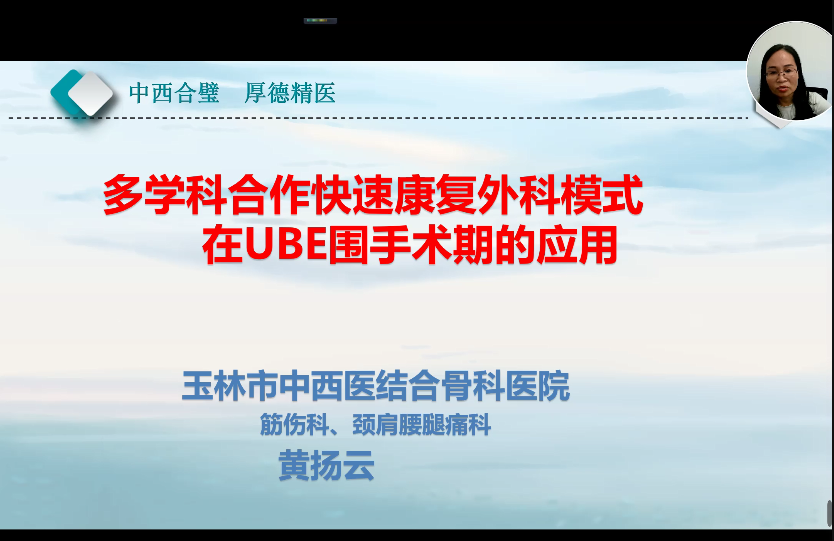 ▲我院筋伤科护士长黄扬云副主任护师线上授课《多学科合作快速康复外科模式在UBE围手术期中的应用》