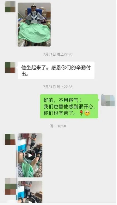 中西结合系良策,妙手回春得众乐。术后,脊柱二科团队灵活运用中医特色针灸、穴位贴敷及中药涂擦治疗,达到疏通经络、活血化瘀、增强免疫力,加快术后康复。脊柱二科护理团队用专业的护理技能和全心全意的关怀,悉心照料患者。目前该患者肌力较前有所恢复,病情往较好方面发展,治疗效果较好。陈先生重拾希望,对身体康复信心大增,家属也十分感激我们的治疗和付出。脊柱儿科全体医护人员也为患者的坚强所欣慰,手术成功后患者和家属积极的配合治疗,大大加强了后期的康复效果。用专业,用爱心,为病患解除病痛,我们一直在努力! 图六:陈先生家属发来信息表示感谢