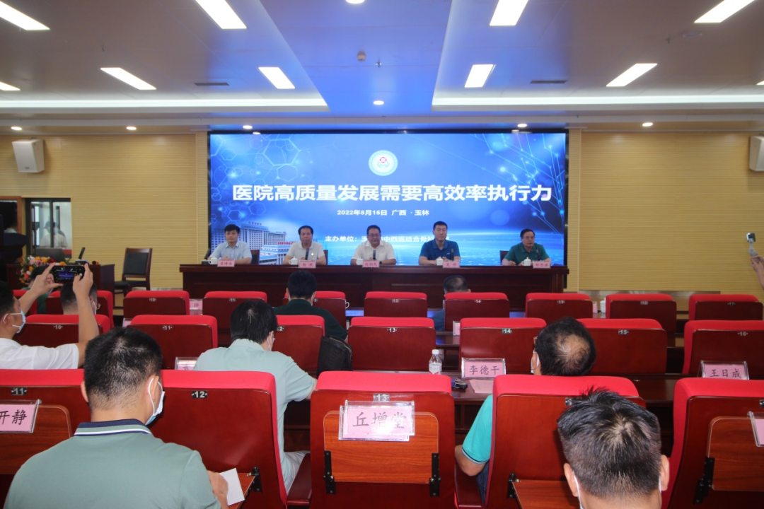 为适应新时代医院发展要求,提升医院中层管理人员执行力,打造医院高效执行力团队,推进医院高质量发展,以更加斗志昂扬的姿态迎接党的二十大胜利召开,2022年8月15日下午,玉林市中西医结合骨科医院组织召开《医院高质量发展需要高效率执行力》培训会。此次培训会邀请了广西医科大学校长、二级教授,主任医师,博士生导师,享受国务院政府特殊津贴的赵劲民博士来院授课,玉林市直各医院和部分县(市、区)人民医院书记、院长、管理骨干和玉林市中西医结合骨科医院全体中层管理人员等约150人参加了培训。