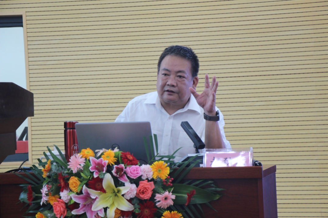 ▲广西医科大学赵劲民校长进行《医院高质量发展需要高效率执行力》授课
