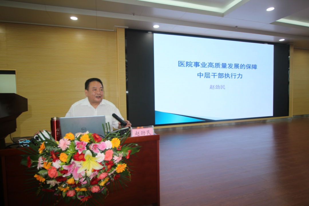 赵劲民校长指出,提倡的中层干部执行力,更注重在动态复杂系统性中抓住重点、把握全局、平衡利益、协调推进;更注重改革创新,通过制度、体制、机制创新,有效发挥党委行政总揽全局、协调各方的作用;更注重以人为本、激发人的潜力,在实现医院战略目标的同时实现个体最大程度的发展。中层干部要明确和牢记工作目标和岗位职责,把目标化为具体的行动指南和工作动力,同时要减少执行过程中不必要的环节,增强团队精神,提高执行过程中的包容性和互补性,并在团队中营造和谐、务实的执行文化氛围。赵劲民校长的讲课精彩纷呈,会场掌声不断。