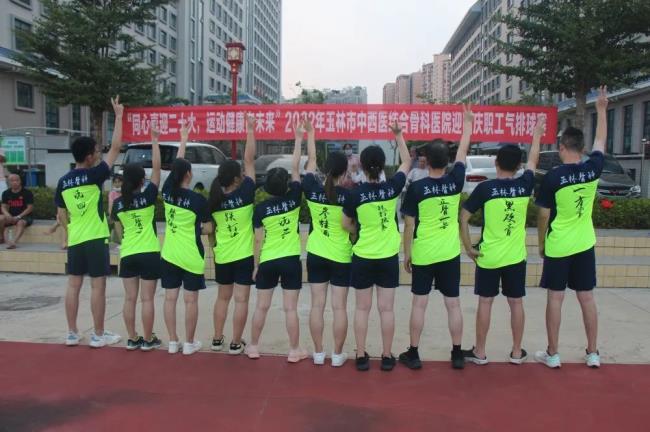 在玉林市中西医结合骨科医院,体育运动的开展得到医院党委和医院工会的大力支持,作为医院文化建设的一项内容,工作之余,广大医护人员积极活跃在各项体育运动中。此次气排球参赛队员中,既有熟悉的老队员,也有许多新面孔的加入。有老将的沉稳发挥,有年轻悍将的勇猛拼杀,科室团队精神在场上得到充分展现,比赛双方全神贯注地投入,将拦网、传球、吊球、扣杀演绎得淋漓尽致,你来我往互有攻防。场下啦啦队也不闲着,“加油”声浪也在比拼,“第六人”的作用发挥到极致。参赛队员们顽强拼搏,默契的配合,高尚的球风博得到场观战的观众阵阵掌声。