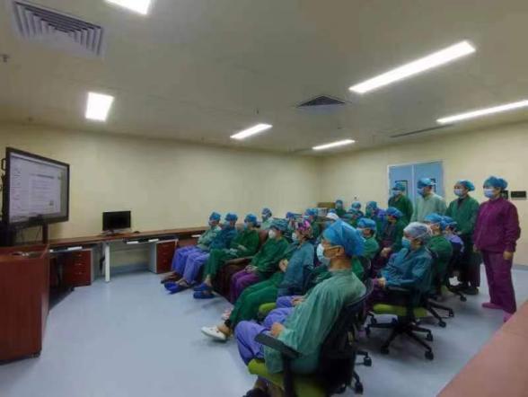 图为临床科室通过线上直播方式观看培训内容
