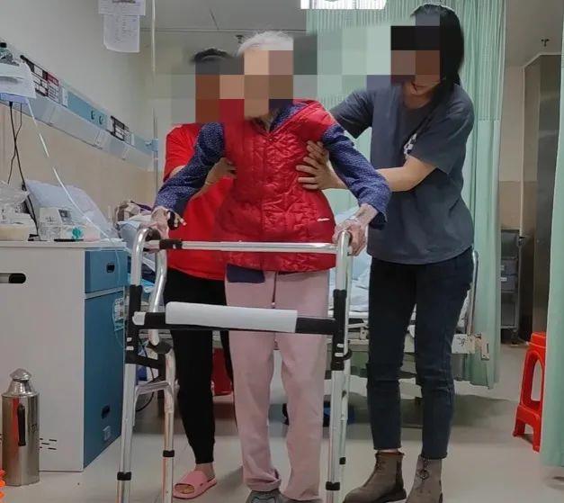 ▲112岁超高龄髋关节置换病人术后第二天下床活动