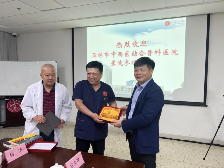 座谈会上,梁博伟院长首先感谢天津医院顾云伍教授在60-70年代对我院给予的大力帮扶,接着介绍了我院目前的发展情况;对天津医院在学科建设、技术创新、科研学术和人才培养等方面取得的成绩以及在国内外骨科界的影响给予了很高的评价;表达了赓续传统友谊、加强双方交流合作的愿望,希望天津医院在技术创新、学术科研、人才培养等方面给予大力支持;最后将天津医院与我院于1993年共同编写的全国高等医学院校教材《中西医结合骨伤科学》和广西壮族自治区卫生健康委员会主编、漓江出版社2021年出版的《天津医师在广西》两本书赠与天津医院。