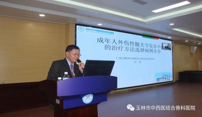 研讨会上,玉林市中西医结合骨科医院骨伤科何忠主任的《成人髋关节发育不良的治疗方法选择》、谢卫宁主任医师的《股骨远端骨梗死的膝关节置换》、张辉 副主任医师的《髋关节发育不良并股骨头、颈缺如全髋关节置换病例分享》、玉林市红十字会医院王义生副主任医师的《夏科氏关节病(膝关节)病例分享》等专题进行了讲解和疑难典型病例讨论。关节疾病往往直接影响今后关节活动功能,严重影响到关节功能活动甚至留下肢体残疾。与会医生在此分享自己治疗的方法和效果,发现不足,以此促进骨科诊疗水平不断发展,吸引了众多中青年关节外科医生积极参与,各抒己见,现场学术气氛热烈。