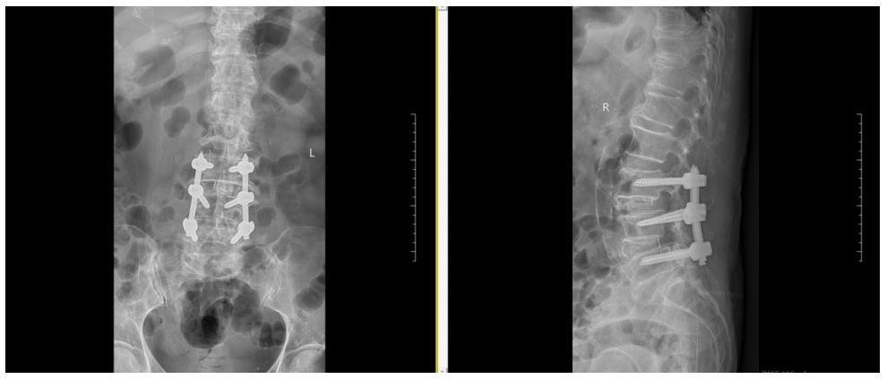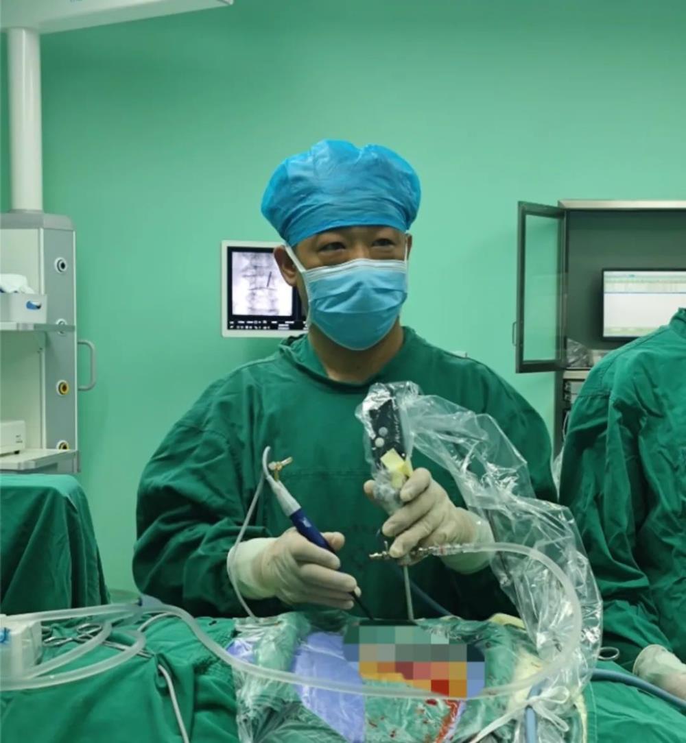 术中王义生主任通过内镜特有的放大效果,获得清晰的手术视野,即(在很小的切口内,通过内镜放大20倍以上视野,椎管外使用2至4mm直径器械,椎管内使用1至2mm直径器械进行操作。)在少出血、少剥离、高效率的条件下成功完成腰椎后路椎板减压椎间融合钉棒系统内固定术。手术历时2小时余,出血仅约100ml。手术效果显著,患者第二天就能戴支具下床活动,患者及家属对手术效果非常满意。