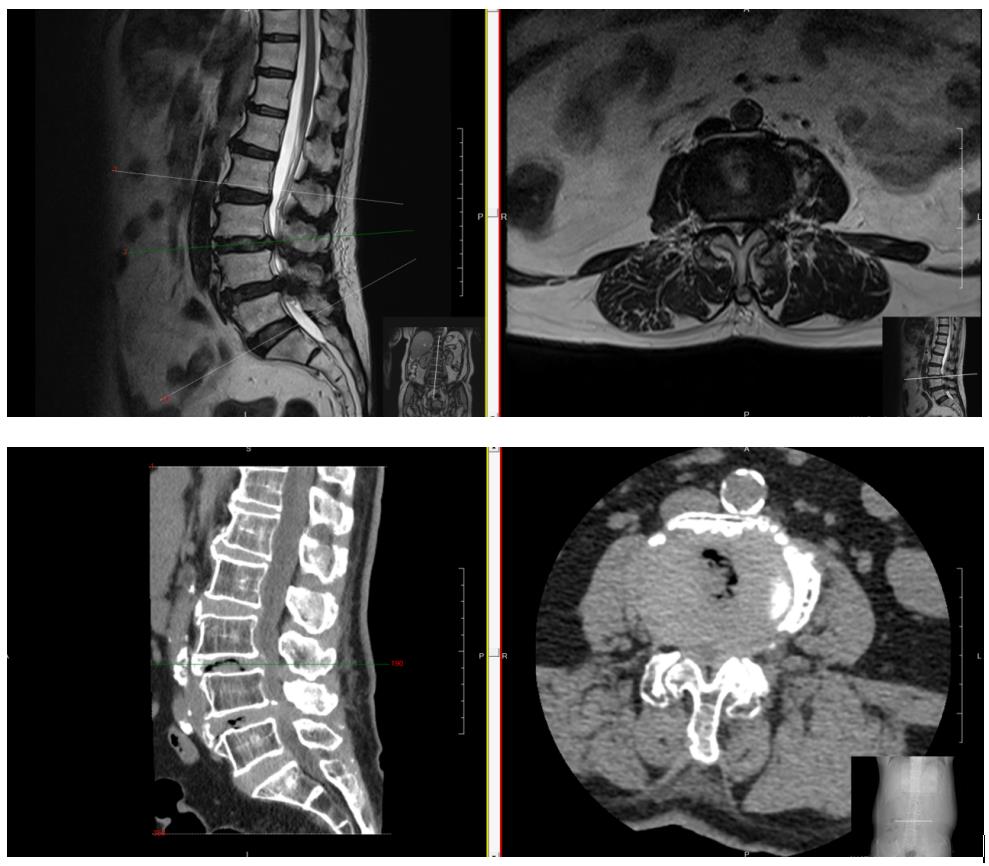 女性患者陈大妈61岁,因“腰痛伴双下肢麻痛5年。”入院。曾辗转区内外多家医院求医,诊断为“1、腰椎管狭窄症;2、腰椎滑脱症”,经过反复保守治疗,但是效果不佳,严重影响日常生活。我院脊柱微创科王义生主任专家团队通过会诊,一致认为可进行手术治疗。本着“微创化”的治疗理念,结合患者实际需求,制定了详细有效的手术治疗方案。在与患者及家属充分沟通后,决定为患者实施OSE (Open Spinal Endoscopy, Openscopy)-单孔双入路脊柱内镜(开放式脊柱内镜,分体式脊柱内镜)术。