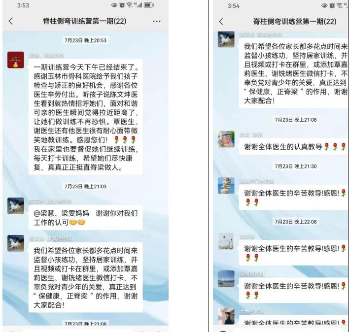 孩子家长普遍反馈良好,并针对训练营制定个性化居家锻炼要求,积极配合,督促孩子们定期打卡巩固治疗成果,发送居家训练视频,让康复医师及时了解孩子情况,矫形动作,将诊疗服务延伸到院外,达到家医合作效果。