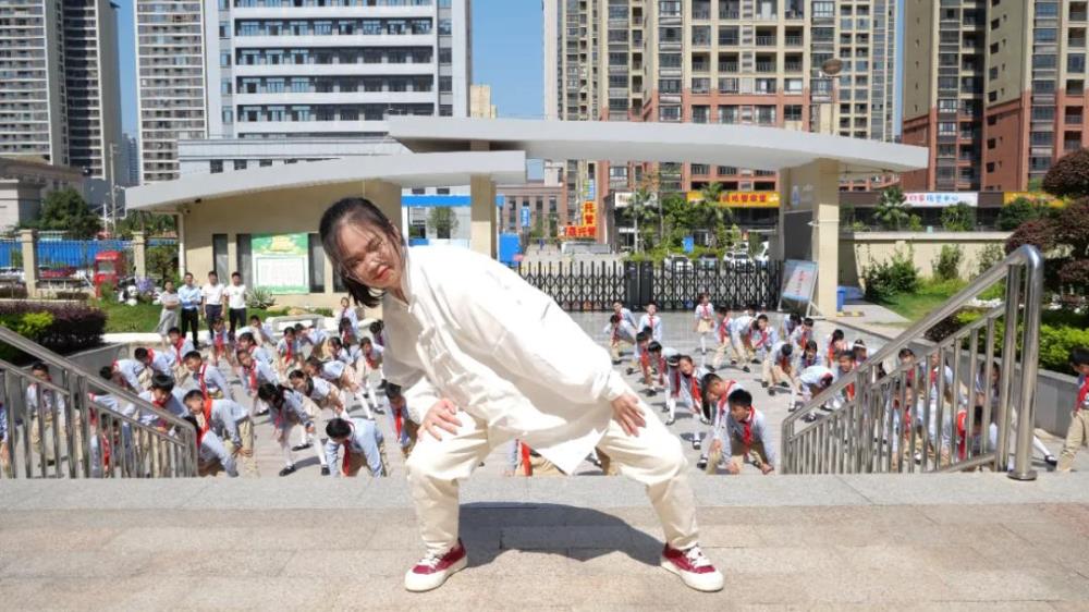 同时,筋伤科韦小芳医生一边讲解,一边带领同学们做起了八段锦健身操。同学们认真观察,仔细倾听,一招一式有模有样地跟着练习,表现出了极大的热情和兴趣。