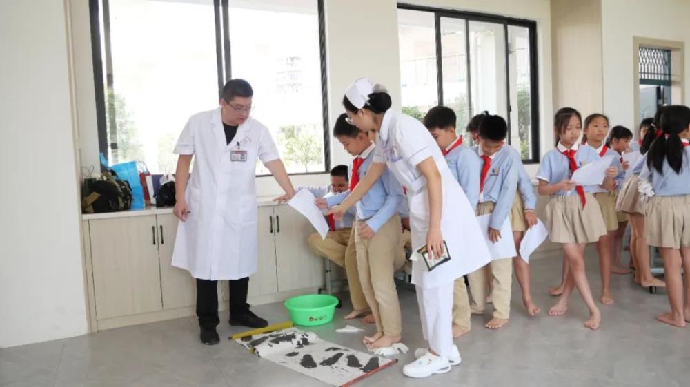 矫形骨科张辉主任的医生团队还在现场开展了扁平足健康科普及筛查义诊活动,以帮助孩子们及早发现和预防扁平足问题,评估同学们的足部健康情况。