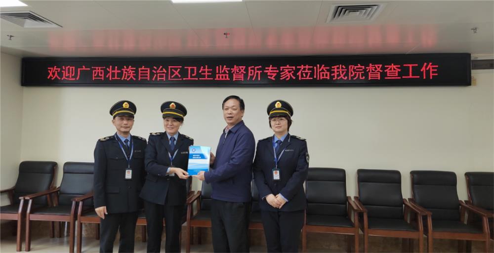 2023年12月7日广西壮族自治区卫生监督所专家组莅临我院进行中医药服务依法执业监督检查。专家组对我院的中医药服务的中医执业许可、中医病例书写、中医药服务场地、操作流程、操作规范等进行检查。