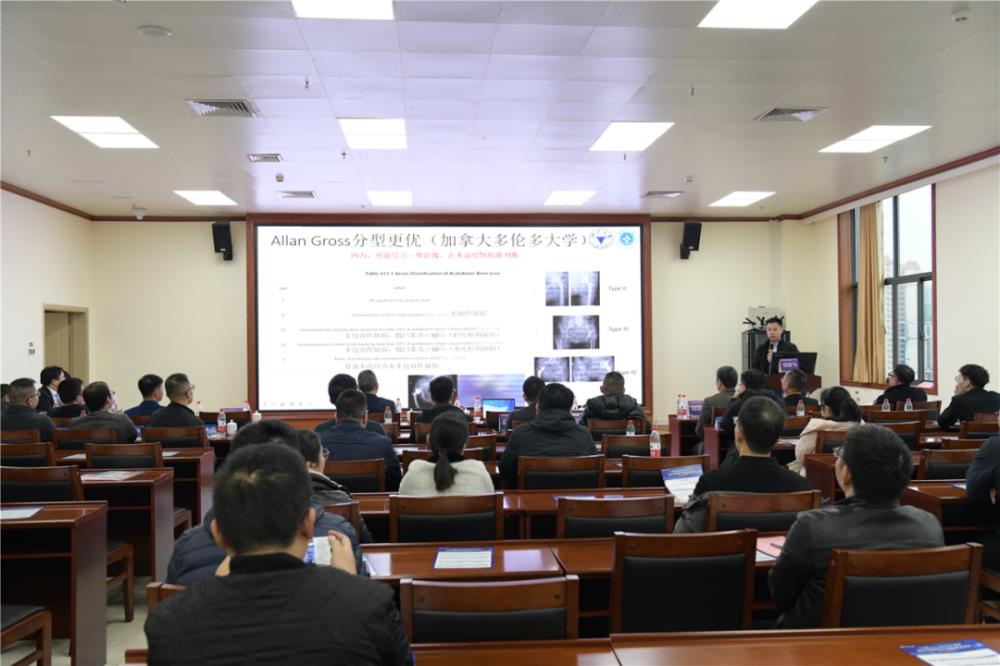 ※玉林市中西医结合骨科医院髋关节二科杨小平教授就《伴有强直性脊柱炎行髋关节置换的体会》进行专题汇报。