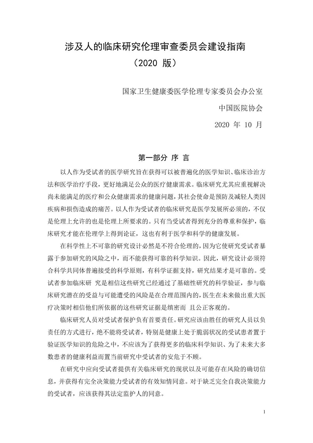 涉及人的临床研究伦理审查委员会建设指南