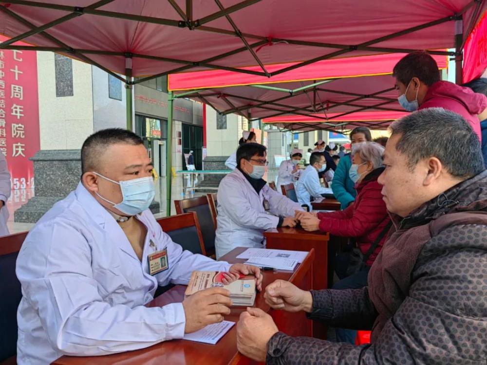 七十载薪火相传,七十载风雨共济,中西结合守正创新共谱锦绣华章。12月25日,玉林市中西医结合骨科医院建院70周年之际,举办了一场“义诊送温暖“玉骨”伴健康”回馈社会大型公益义诊活动,医院党委副书记、院长梁博伟、副院长李开静、唐继仁等骨科专家为前来寻医问诊的市民提供免费医疗服务。我院充分发挥骨科专科特色优势,在寒冷的冬日为市民送上一份暖心的健康“礼包”。