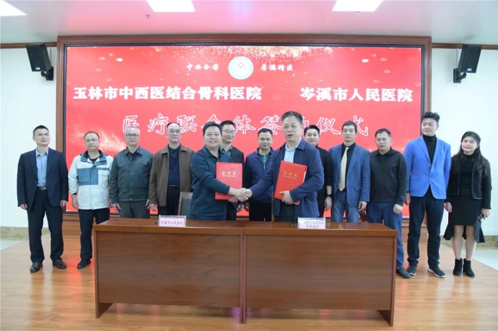为深化医药卫生体制改革,推进建立上下联动的医疗服务体系,更好地发挥三级医院专业技术优势及带头作用,加强下级卫生机构能力建设,构建分级医疗、急慢分治、双向转诊的诊疗模式,促进分工协作,合理利用资源,方便群众就医。3月21日,我院与岑溪市人民医院正式举行了医疗联合体及专科联盟合作签约仪式。岑溪市人民医院副院长钟里军一行,玉林市中西医结合骨科医院党委副书记吕广华、副院长李开静、医务科负责人梁周以及各职能科室负责人出席了签约仪式。