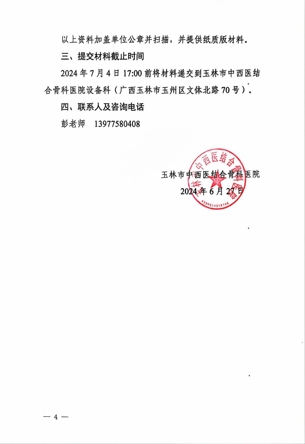 玉林市中西医结合骨科医院磁共振维修服务市场调研问询公告