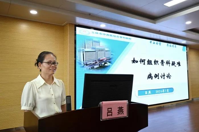 玉林市中西医结合骨科医院护理部副主任吕燕副主任护师讲授“如何组织骨科疑难病例的讨论”。