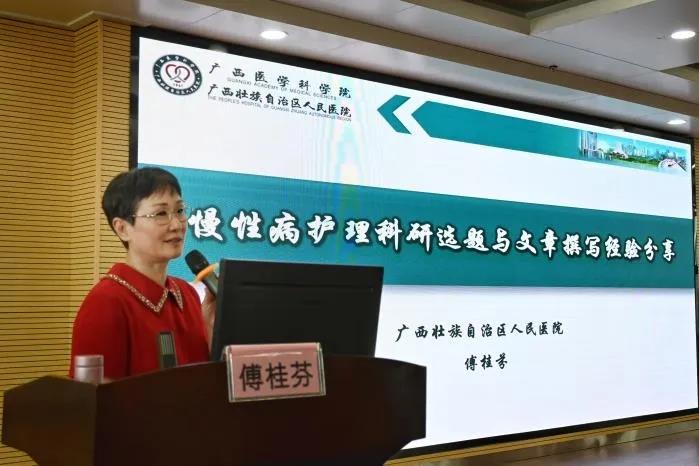 广西护理学会理事长傅桂芬教授讲授“慢病护理科研选题与文章撰写经验分享”。