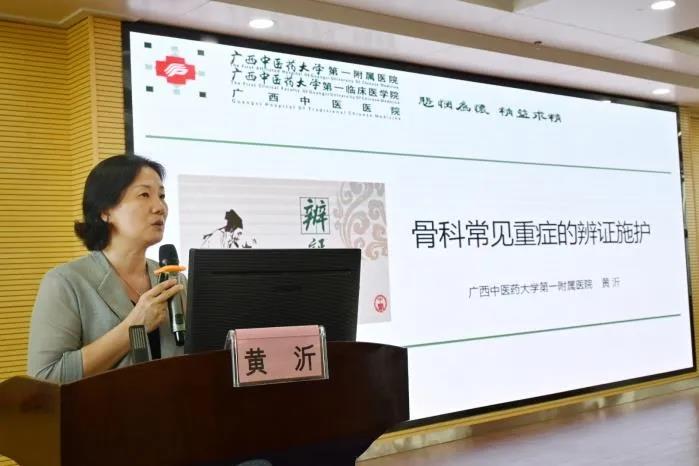 广西中医药大学第一附属医院护理部主任黄沂教授讲授“骨科常见重症的辨证施护”。