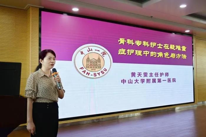 中山大学附属第一医院黄天雯主任护师讲授“骨科专科护士在疑难重症护理中的角色与方法”。