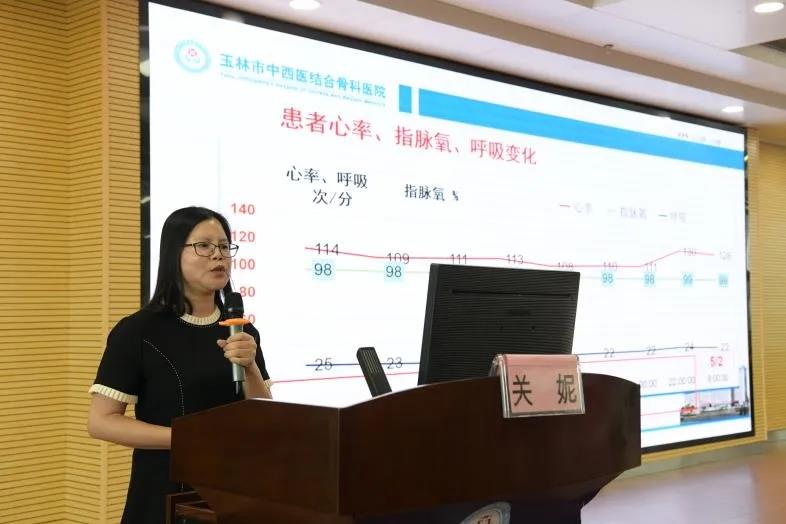 玉林市中西医结合骨科医院关妮副主任护师讲授“一例右股骨干骨折并发急性肺栓塞护理难点讨论”。