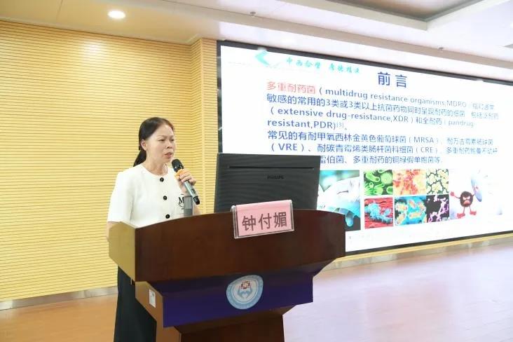 玉林市中西医结合骨科医院钟付媚副主任护师讲授“基于循证护理在一例左小腿皮肤脱套伤合并多重耐药菌感染的患者个案护理中应用”。