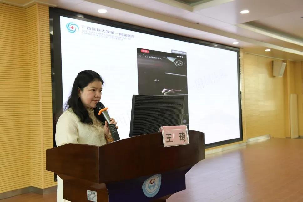 广西医科大学第一附属医院王琦副主任护师讲授“一半是海水,一半是火焰—心理疾患典型案例带来的分析与思考”。