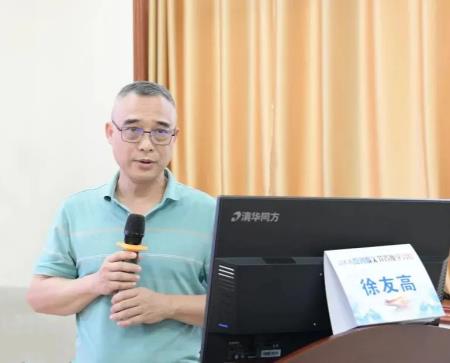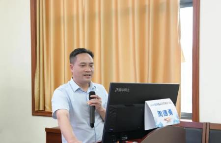 ▲玉林市中西医结合骨科医院唐继仁副院长主持会议