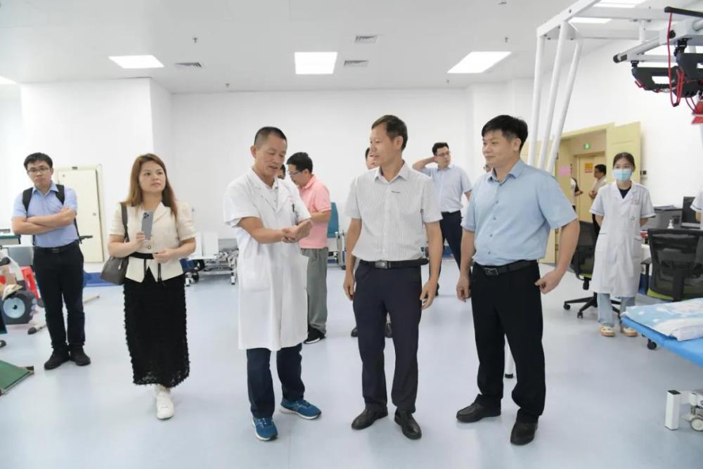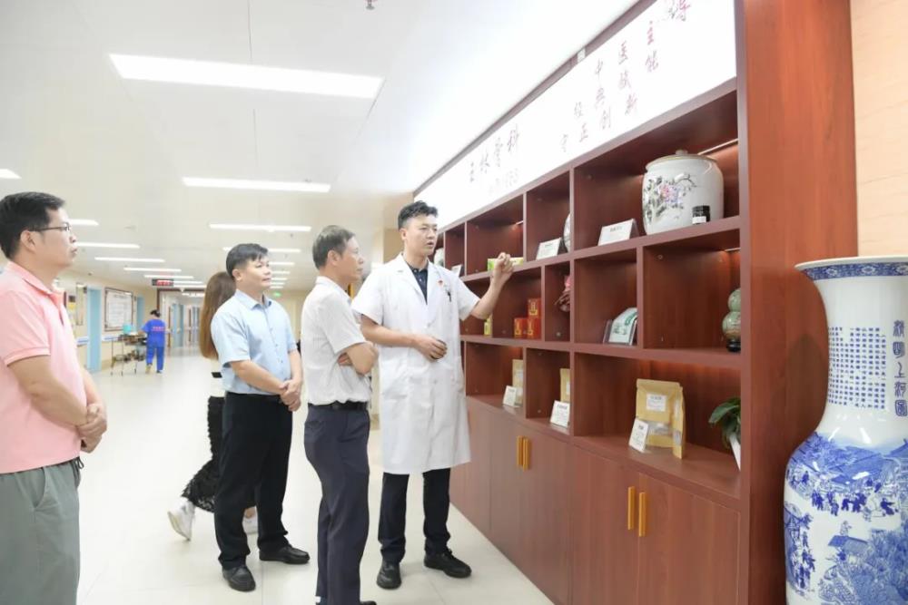 在梁博伟院长的陪同下,刘伟平院长团队参观了我院玉骨展馆、治未病科(中医经典病房)和康复治疗科。