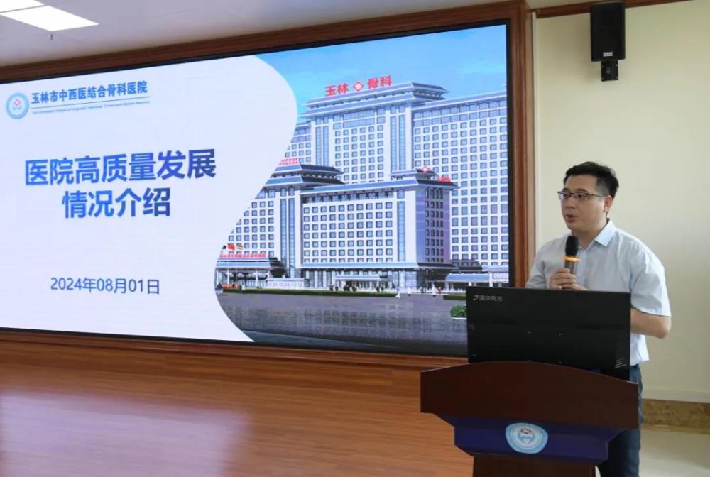梁博伟院长代表医院欢迎刘伟平教授一行莅临调研。并指出,我院学习贯彻党的二十届三中全会习近平总书记以中国式现代化全面推进中华民族伟大复兴的讲话精神,贯彻落实玉林市委、市政府“科技强市,产业旺市,人才兴市,健康壮市”战略构想,我院坚持科技兴院,坚持人才兴院,在科技创新、人才培养等方面希望得到暨南大学暨芯研究院平台支持,从而提升我院科研、人才培养和中医药及民族药制剂研发水平。