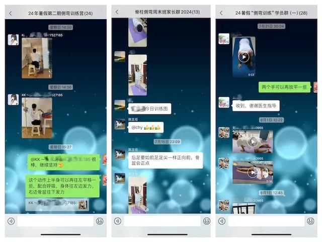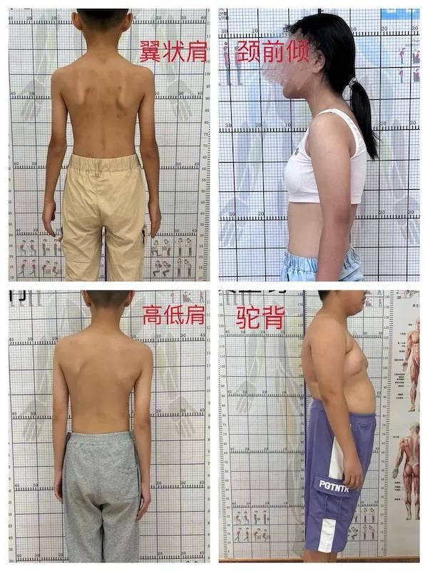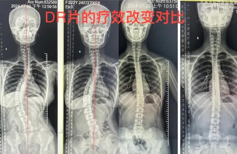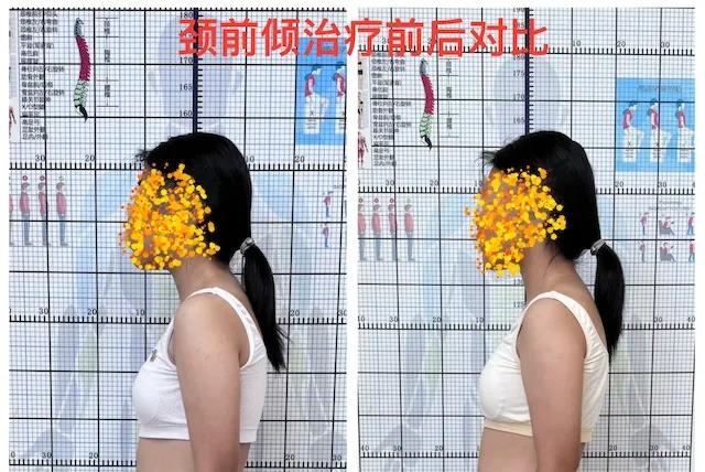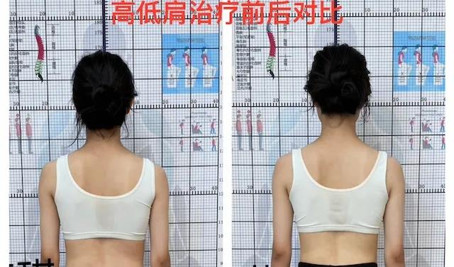 除了脊柱侧弯训练,我们还针对颈前倾、高低肩、驼背、翼状肩等不良体态进行纠正训练。治疗一周后,体态有明显改善。