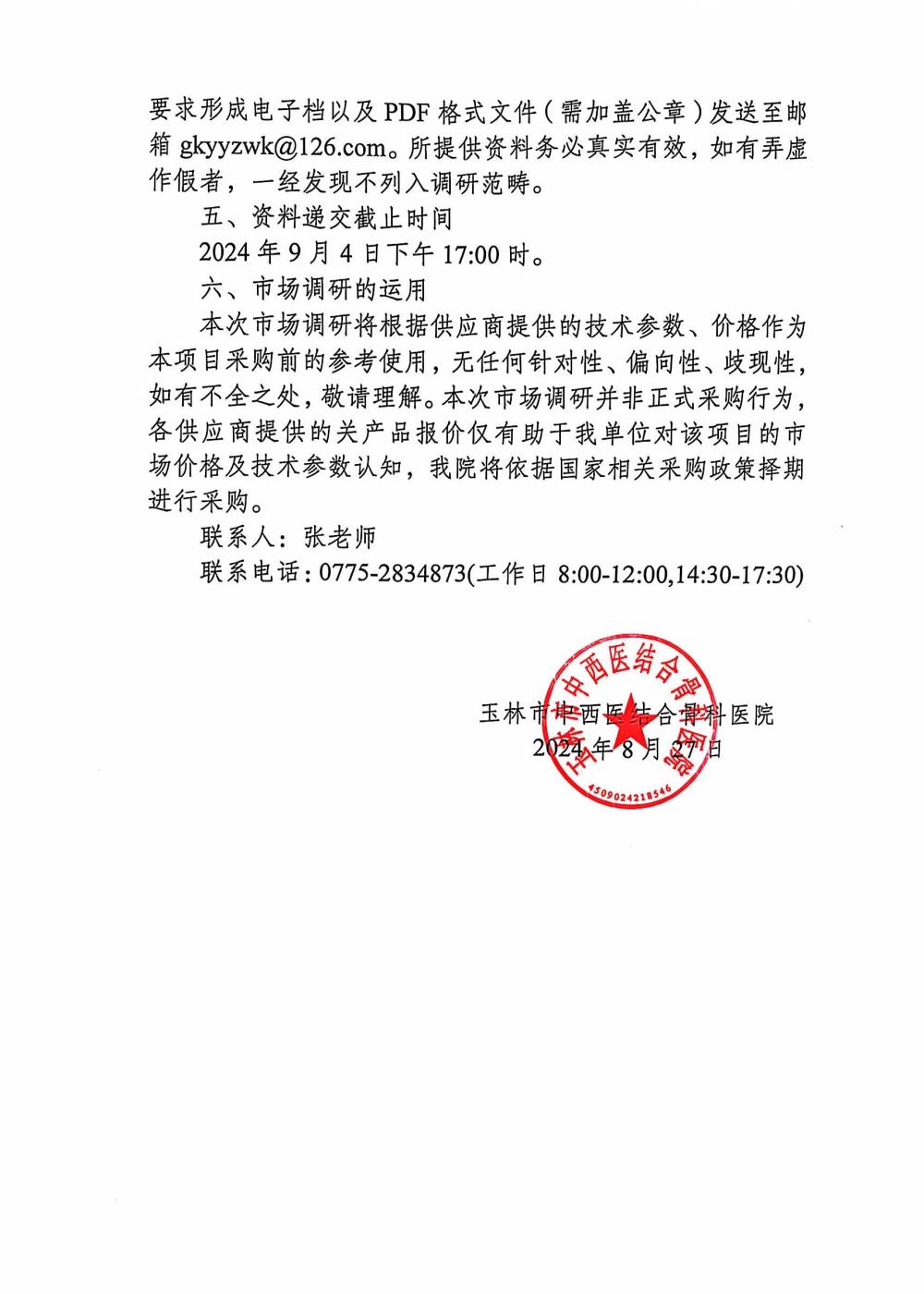 玉林市中西医结合骨科医院2025-2026年度制剂产品内包材采购项目市场调研公告